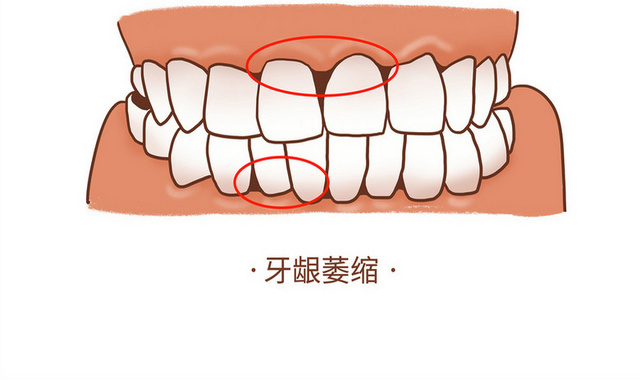 导致牙龈萎缩的主要因素是致病细菌的感染,出现牙周炎症。很多人忽视了牙周的问题,但是牙周健康与我们的全身健康密切相关,牙周问题轻度症状一般是牙龈红肿出血,发展下去牙槽骨和牙龈就萎缩,直到最后牙齿移位脱落;所以科学的进行牙周健康维护管理是很有必要的,做好日常口腔清洁并定期去正规口腔诊所做口腔检查并去除牙结石是很重要。